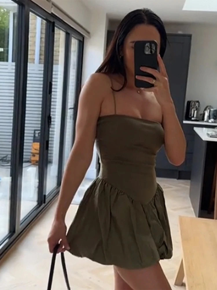2024 TRAF-Women's Thin Straps SummerRibbed Poplin Puff Short Sexy Women's Clothing Vacation Outfits Female Dresses